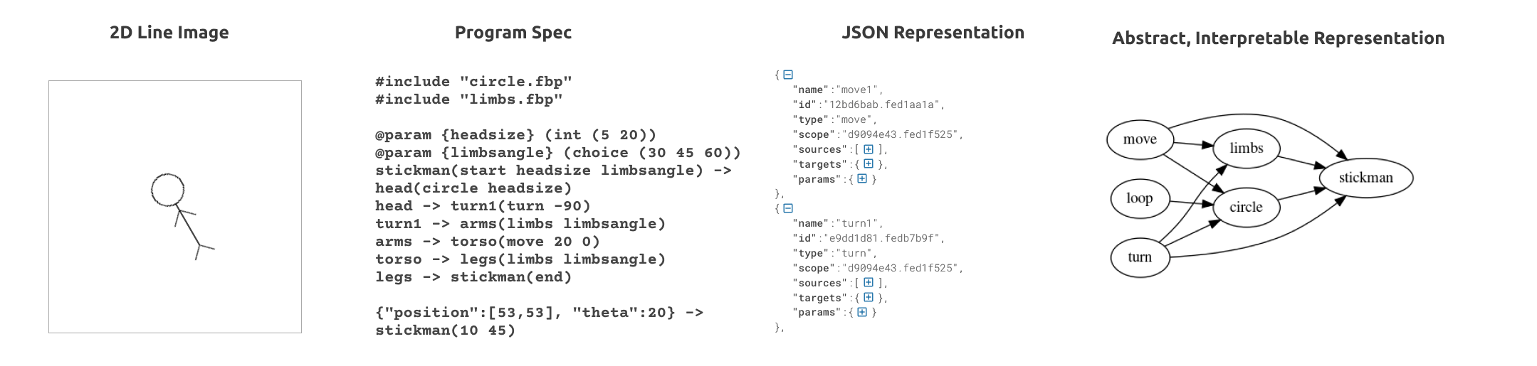 It brings to real-world tasks the learnings from Flatland, a toy environment, DSL & benchmark we built in early 2022, for synthesising functional programs to draw 2D line images. Progress on Flatland draws from recent breakthroughs in neuro-symbolic AI systems , which have resulted in powerful reasoning for visual[1], spatial[2], action[3], and theoretical[4], gameplay[5] understanding, approximating functions from just a few samples.