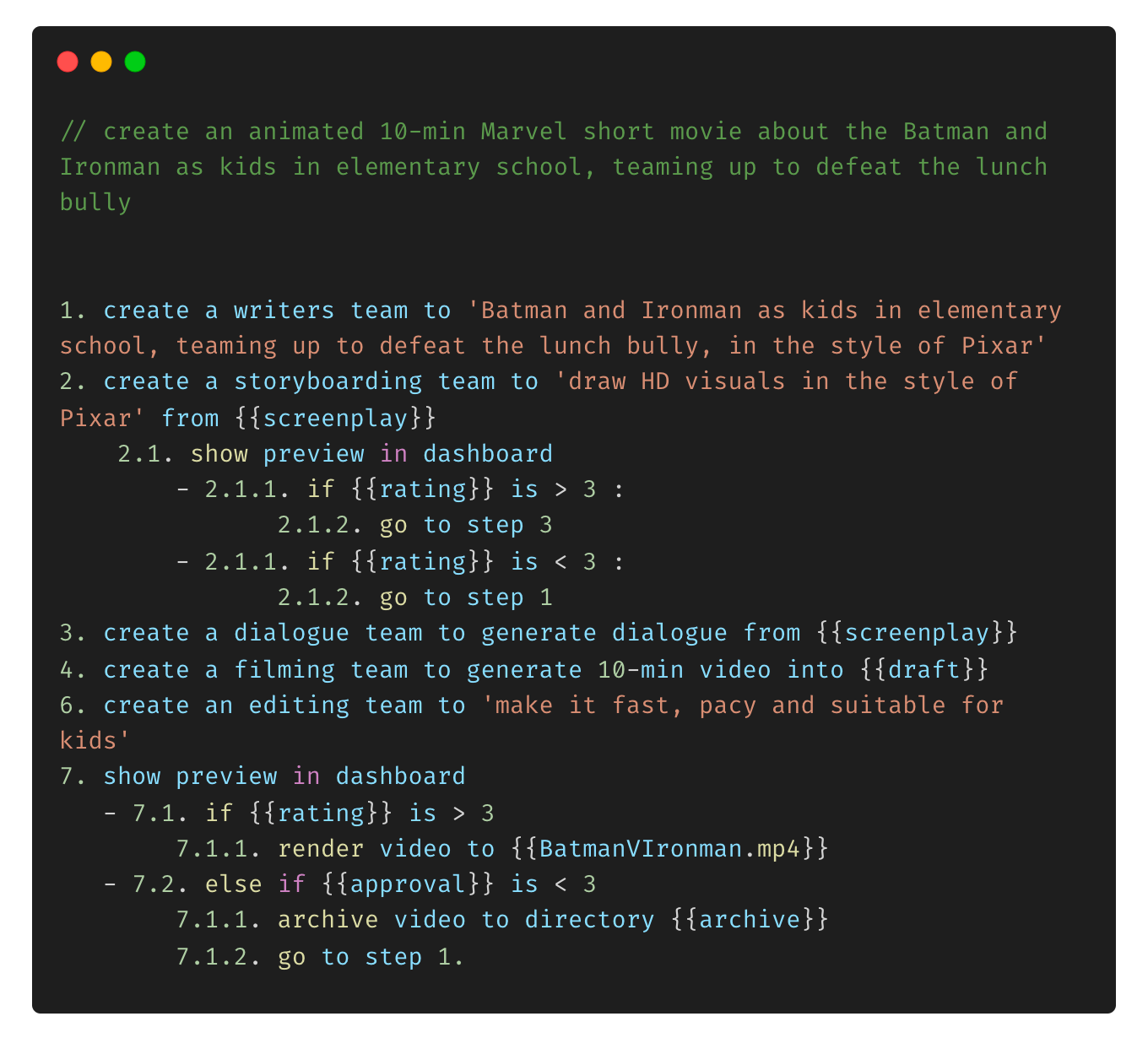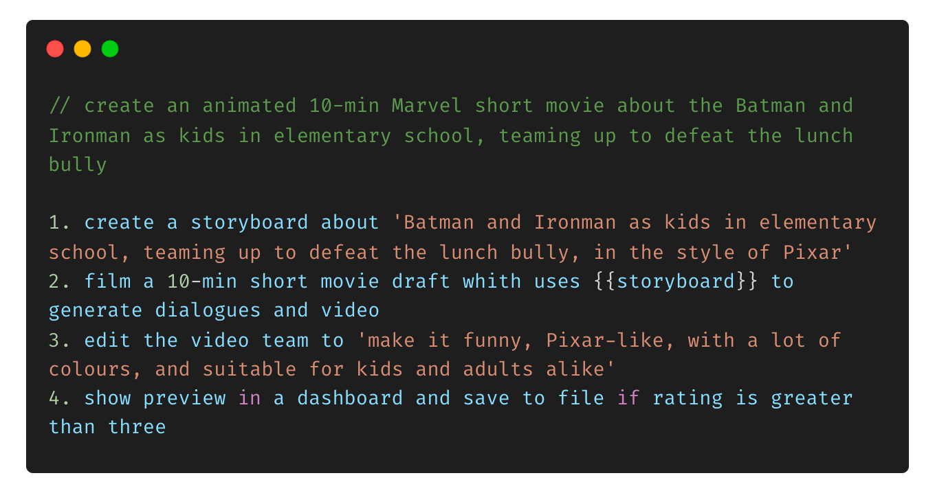 For instance, it could be possible to teach PAC how to perform any complex, multi-step process, like planning & creating a short film :