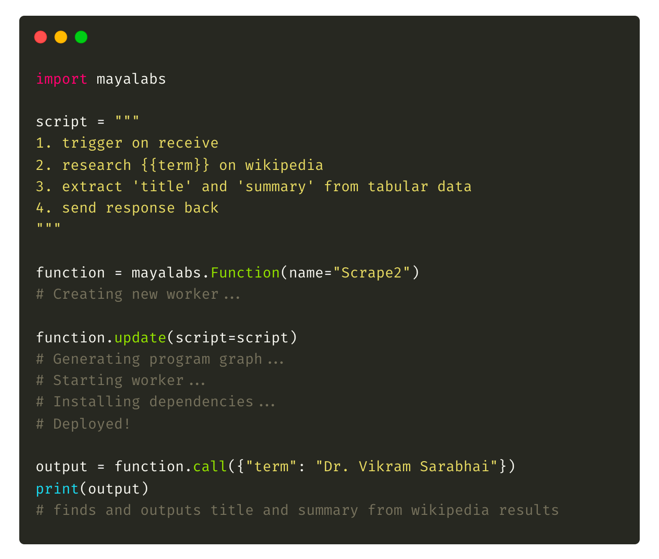 A few years ago, we embarked on a different research approach - to build interpretable AI systems that demonstrate plasticity - or the ability to flexibly learn, retain & modify behaviour from a few demonstrations. To test some of these ideas in practice, we're opening up the Maya platform for general use, which includes a Python SDK, CLI and a command bar to summon it from within the browser, along with a visual flow-based IDE to easily edit and interpret the execution of the programs it generates :